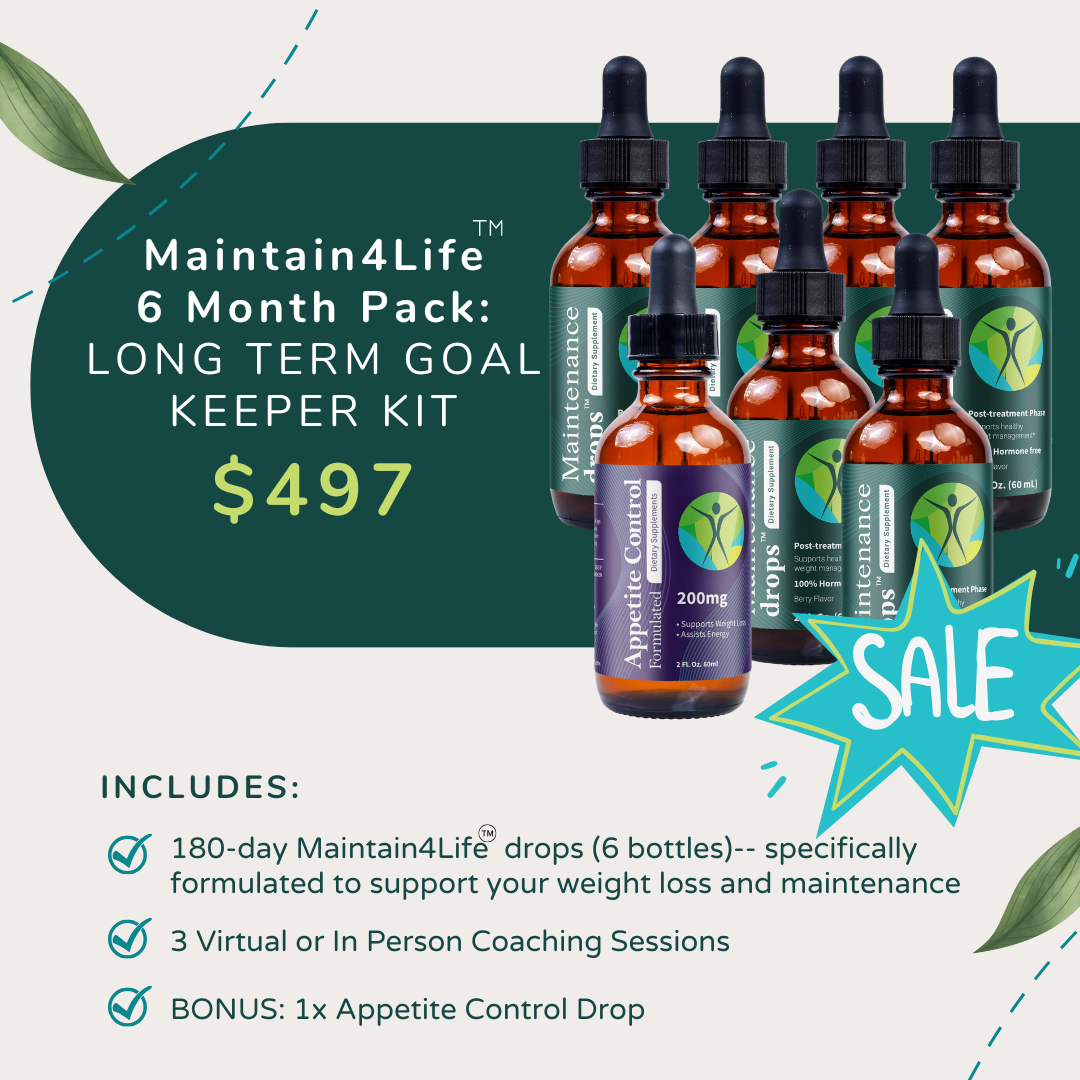 180 day Maintain4Life drops (6 bottles)– specifically formulated to support your weight loss and maintenance.